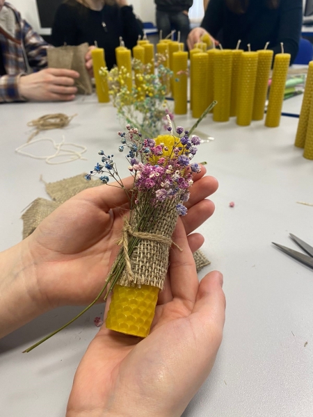 Все участники творческого мастер-класса узнали много интересной и полезной информации о свечах. Каждый студент скрутил себе эффектную и оригинальную свечку и задекорировал ее гипсофилой и мимозой. Каждый почувствовал себя мастером на все руки!
